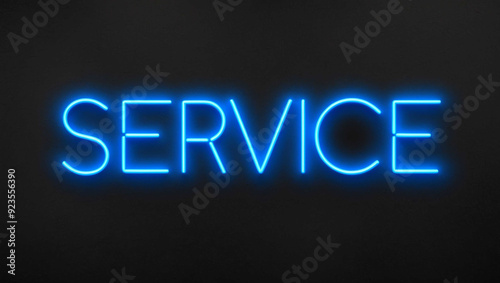 service blue neon lettering on plain dark black background