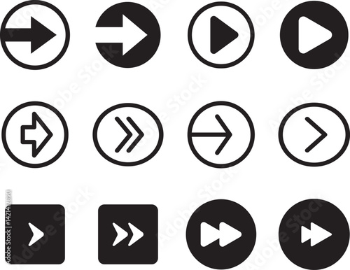 Set arrow icons. Collection different arrows sign. Set different cursor arrow direction symbols in flat style. Black arrows icons – stock vector