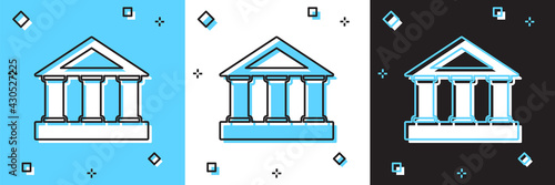 Set Bank building icon isolated on blue and white, black background. Vector