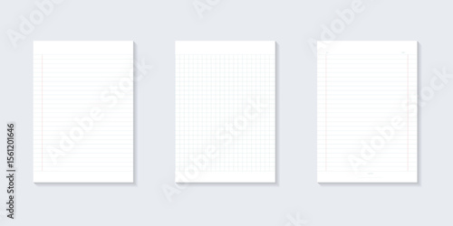 Set Blank white notepaper design. Hand drawn blue lined paper background collection