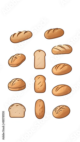set breads isolated on white background