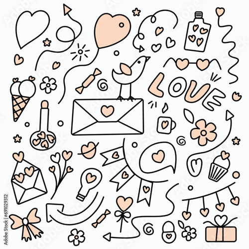 Set for Valentine s Day. Elements for design. doodle illustration in flat style. Isolated background