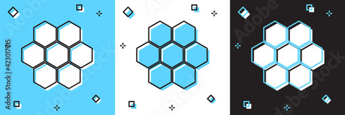 Set Honeycomb icon isolated on blue and white, black background. Honey cells symbol. Sweet natural food. Vector