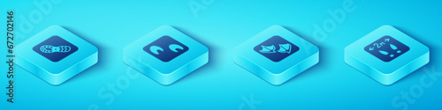 Set Isometric Human footprints shoes, Horse paw, Safe distance and Seagull icon. Vector