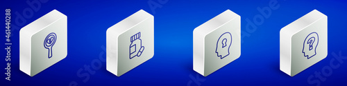 Set Isometric line Broken heart or divorce, Sedative pills, Solution to the problem and Head with question mark icon. Vector