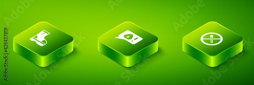 Set Isometric Telephone call 911, No fire match and Fire boots icon. Vector