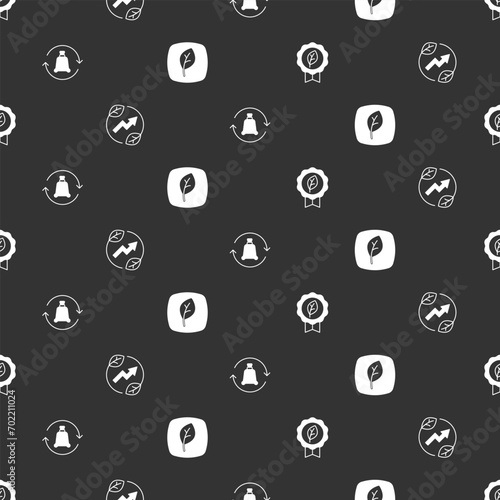Set Leaf Eco symbol, Electric saving plug in leaf, Garbage bag with recycle and on seamless pattern. Vector