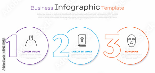 Set line Anonymous with question mark, Holy bible book and Thief mask. Business infographic template. Vector