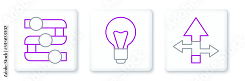 Set line Arrow, Graph, chart, diagram and Light bulb icon. Vector