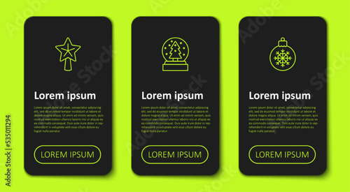 Set line Christmas star, snow globe and ball. Business infographic template. Vector