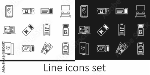 Set line Online car sharing, Train ticket, Ticket, Museum, hotel booking, Infographic of city map, and icon. Vector