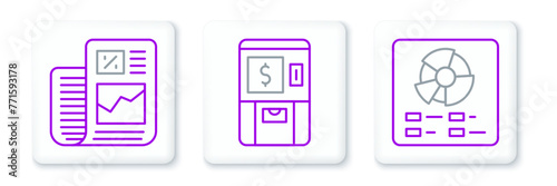 Set line Pie chart infographic, Business finance report and ATM and money icon. Vector