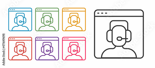 Set line Telephone 24 hours support icon isolated on white background. All-day customer support call-center. Full time call services. Set icons colorful. Vector