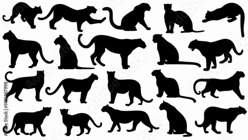set of jaguar silhouette vector