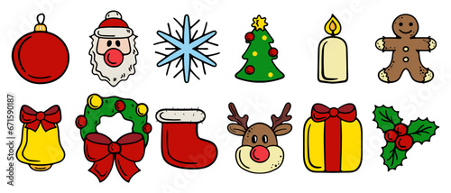 Set of 12 christmas icons. Decoration, decorate, xmas, snow, snowflake, santa, deer, new year, eve, december 25, winter, holiday atmosphere, celebrate, family celebration, traditions