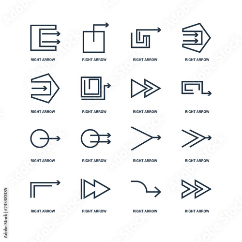 Set Of 16 outline icons such as Right arrow, arrow linear icon