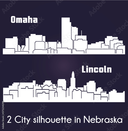 Set of 2 city silhouette in Nebraska ( Lincoln, Omaha )