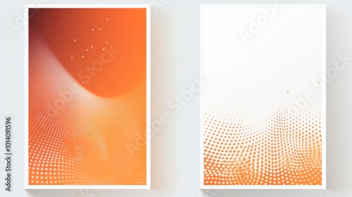 set of 2 frame Abstract orange gradient poster background vector set. Modern cover template with orange and white perspective geometric prism shape, halftone dot.