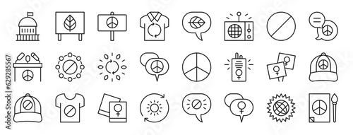 set of 24 outline web activist icons such as parliament, leaf, banner, tshirt, ecology, radio, ban vector icons for report, presentation, diagram, web design, mobile app