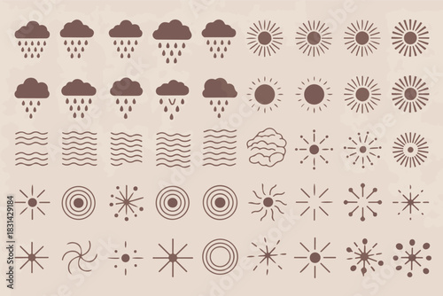 Set of 30 Natural Elements in Abstract Clean Minimalist Line Style
