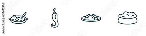 set of 4 linear icons from food concept. outline icons included cantonese seafood soup, chili pepper, yusheng, dog food vector