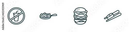 set of 4 linear icons from food concept. outline icons included no drinking, buddhas delight, hamburger with bacoon, sushi and chopsticks vector