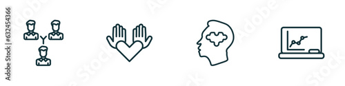 set of 4 linear icons from people concept. outline icons included business partnership, no racism, psychology, classroom stats vector