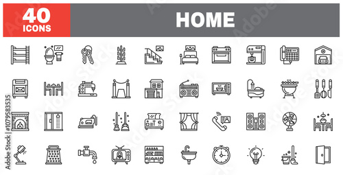 Set of 40 line icons home. Outline icon collection. Editable stroke. Vector illustration.