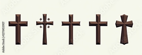 Set of 5 Dark Brown Cross Icons on White Background