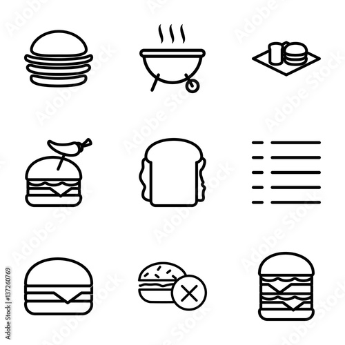 Set of 9 burger outline icons