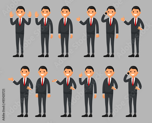 Set of a businessman cartoon character in different poses. Vector illustration in a flat style