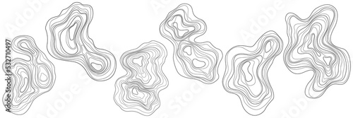 Set of abstract tree rings. Png topographic map design elements. Contour map concept. Thin wavy lines.