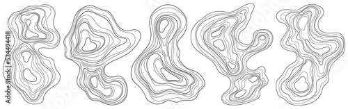 Set of abstract tree rings. Png topographic map design elements. Contour map concept. Thin wavy lines.