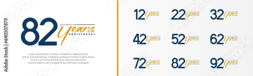 set of anniversary logo dark blue color number and orange text on white background for celebration