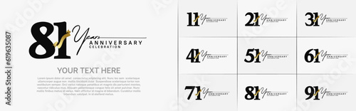 set of anniversary logo with black number and golden ribbon can be use for celebration