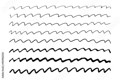 Set of artistic pen strokes. Black Hand drawn ink wavy horizontal grunde lines squiggles Doodle style sketchy Scribble dividers Hand drawn underline elements for design emphasis Decorative borders