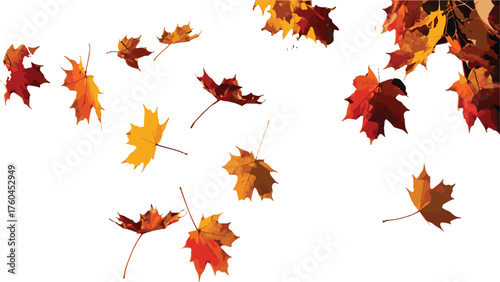 Set of autumn leaves collection isolated on white featuring maple foliage, orange, yellow, and red colors, a perfect seasonal fall nature decoration vector illustration