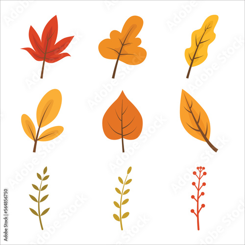 Set of autumn leaves flat vector illustration