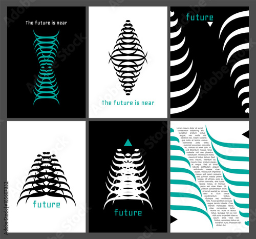 Set of backgrounds with acute abstract waves elements. Good design for folders, posters, pages. Business templates. Elements can be used like logo. Future style.