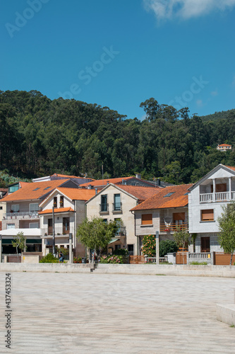 set of beautiful houses on the main square of the town of Combarro in Galicia