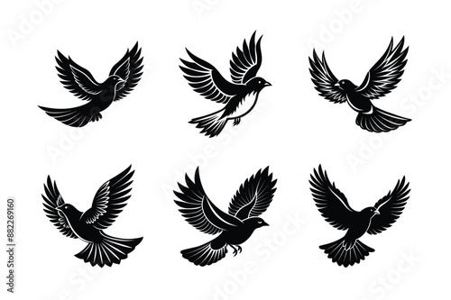 set of bird flying Black Silhouette Bundle - Stunning Vector Illustrations for Wild or domestic animals Nature Lovers, isolated on white