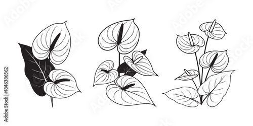 set of black and white flowers