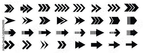 Set of black arrows. Collection of different arrow signs. Cursor arrow direction symbols in flat style.
