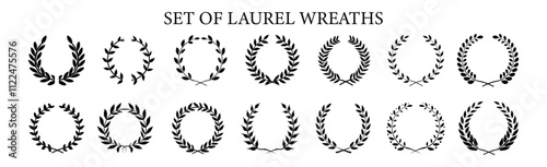 Set of black circular foliate laurels branches. Laurel wreath. floral frame laurel wreath vector set. vector illustration