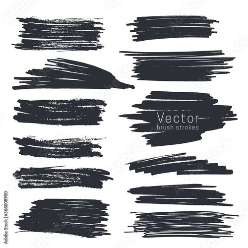 Set of black ink brush strokes isolated on white background