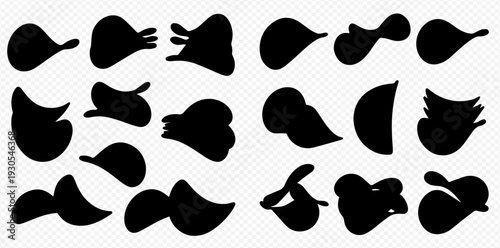 Set of black liquid blob shapes, organic fluid elements, and ink splatters for graphic design projects.