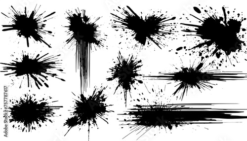 set of black splash illustration, black brush stock , grunge paint ,isolated on a transparent background. PNG, cutout, or clipping path.