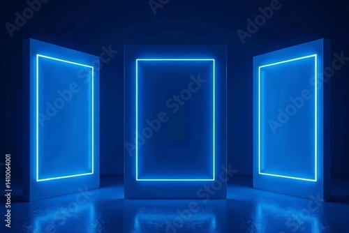 Set of blue abstract frames for futuristic technology interface design, digital concept illustration, technology, set, illustration