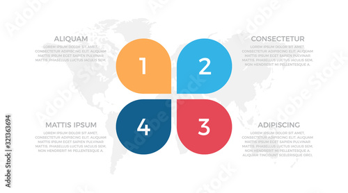 Set of blue, orange and red elements for infographic with world map presentation slides.