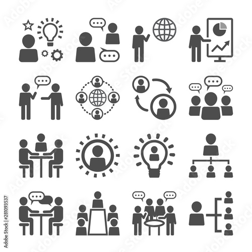 set of business people icons, meeting, team, structure, communication, member, group, idea